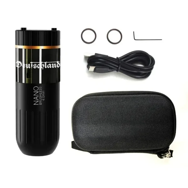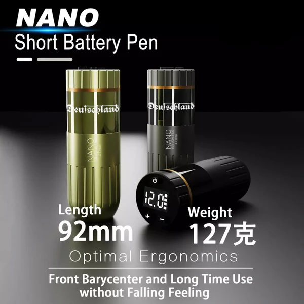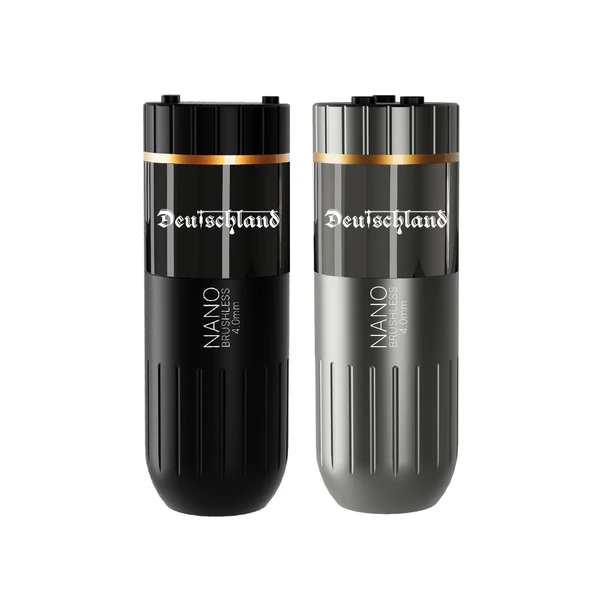 The Deutschland Nano is a tiny, short-body tattoo machine with amazing capabilities that competes with more expensive devices. Its 1800 mAh battery lasts up to 8 hours at 8V, allowing users to enjoy the flexibility of wireless tattooing.